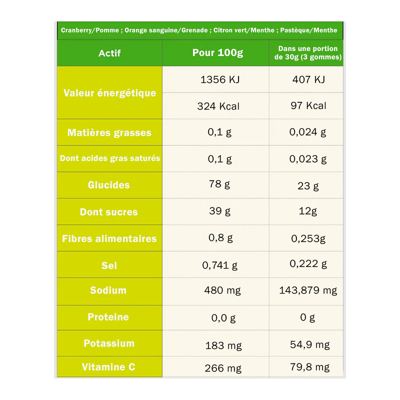 gomme Tâ energy+electrolyte+cafféine Cranberry Pomme
