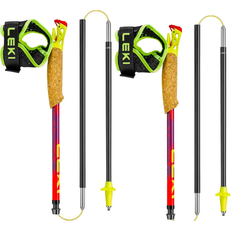 Côté chiffres, LEKI met en avant une taille de rangement d’environ 35 cm et un poids annoncé de 139 g pour une longueur 120 cm (par bâton, selon la fiche). La poignée Trail Trigger Shark (construction Air Channel) est conçue pour être très légère, et la Trigger Shark Mesh Strap se clipse/déclipse d’un geste pour une transmission directe. On retrouve aussi la Trail Tip et une rondelle Trail Running minimaliste, orientées accroche et swing efficace.
