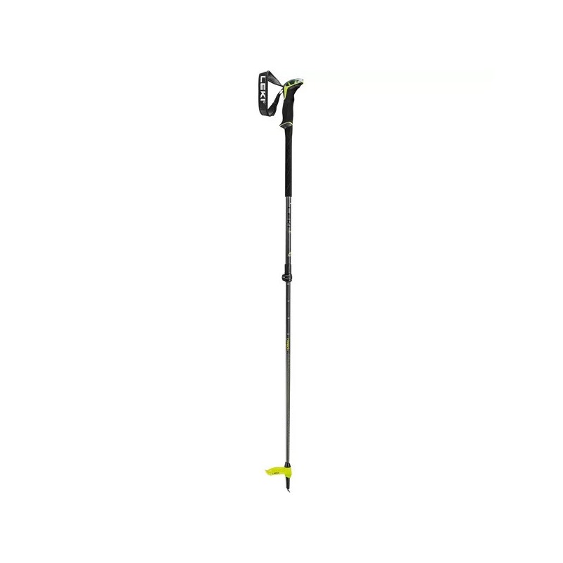 Rando engagée ou sortie tranquille : le LEKI Guide Lite 2 Carbon marie brin haut alu HTS 6.5 et brin bas carbone PRC 1000 aramide, poignée Aergon Air + grip extension et réglage 105–150 cm via Speed Lock 2 Plus. Poids env. 271 g/uni.