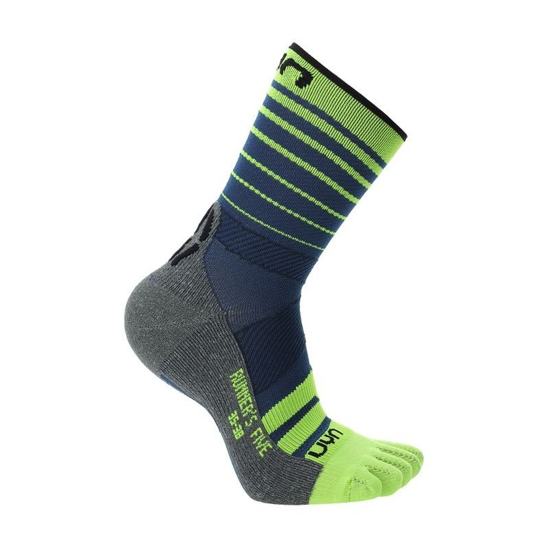 Multipliez les performances par cinq. Les chaussettes UYN® RUNNER'S FIVE blue/yellow fluo
