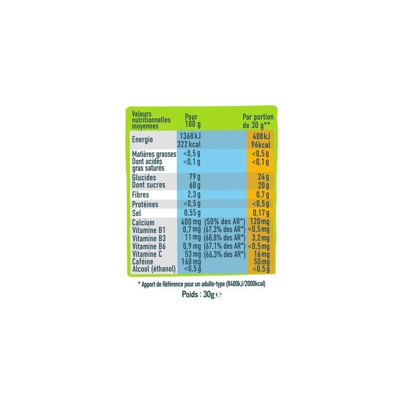 - De multiples vitamines du groupe B pour faciliter l’utilisation des glucides et l’apport des vitamines B6 et C pour retarder la sensation de fatigue
